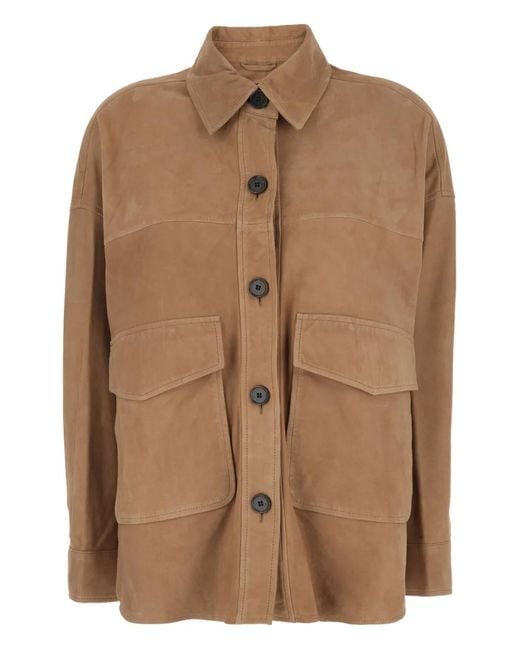 'Lorenne' Jacket With Round Neck And Front Patch Pockets - Brown