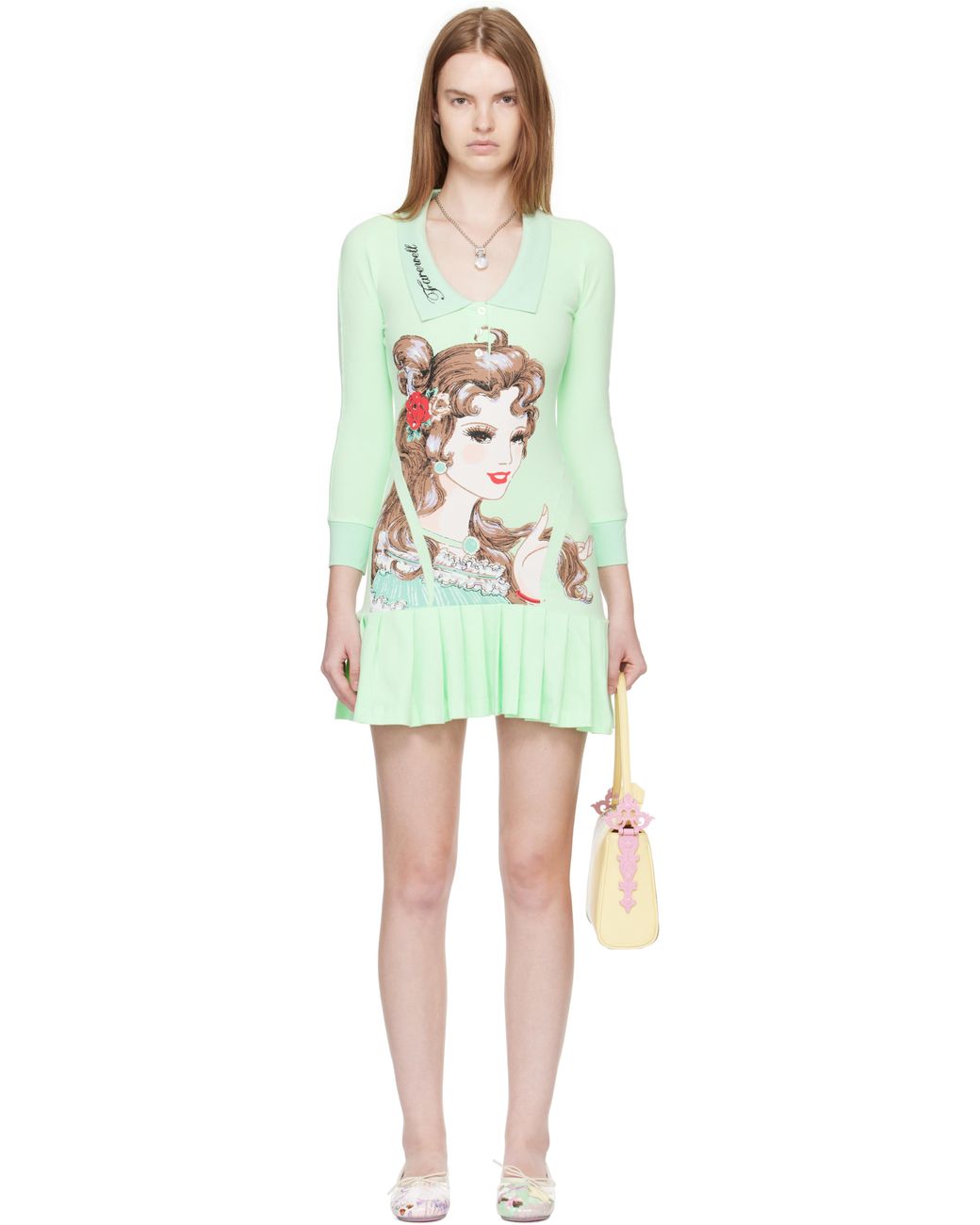 Cotton piqué midi dress. · Jacquard text at plunging rib-knit spread collar · Three-button placket · Graphic bonded at front · Box pleats at tiered hem · Raglan sleeves · Rib-knit cuffs Supplier color: Lady Colour: black
