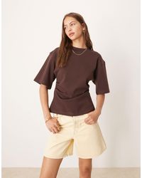 Go to ASOSTops by ASOS DESIGN Crew neck Drop shoulders Short sleeves Corset waist detail Split hem Regular fit. Cotton/Polyester/Elastane. Colour: red