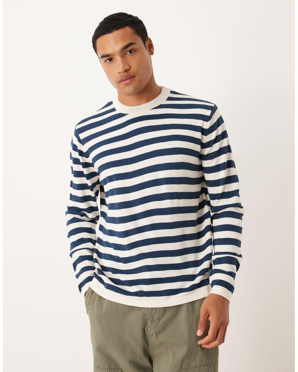 T-shirt by ASOS DESIGN Crew neck Long sleeves Striped pattern Ribbed trim Relaxed fit.