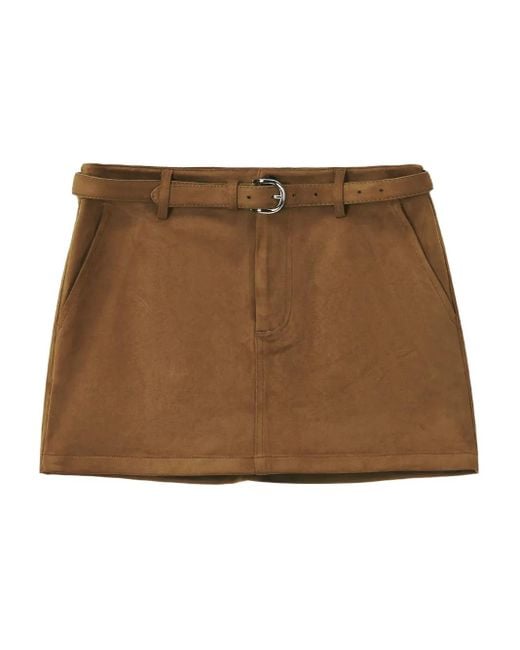 Brown belted waist side pockets straight hem mini length suede effect Size: S. Gender: Female. Material:Spandex/Elastane/Polyester. Colour: brown