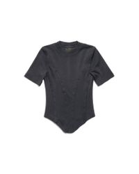 Go to BaltiniBalenciaga corset shirt made of stretch poplin with visible corset details on both front and back. The front structure is reinforced with an internal underwire, while the main closure uses six buttons. The