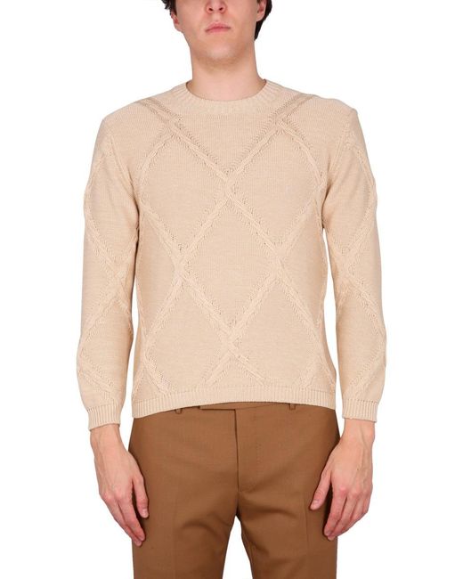 Men's Natural Cotton Cable Stitch Crew Neck Jumper