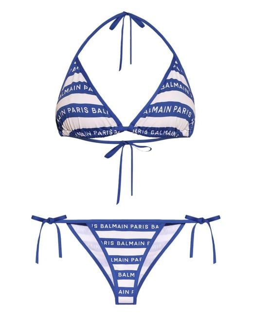 - Striped Logo-Print Bikini