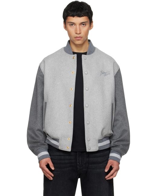 Wool- and cashmere-blend melton bomber jacket. · Rib-knit stand collar, hem, and cuffs · Press-stud closure · Logo embroidered at chest · Welt pockets at waist · Welt pockets at interior · Full satin lining Supplier color: Grey Colour: grey