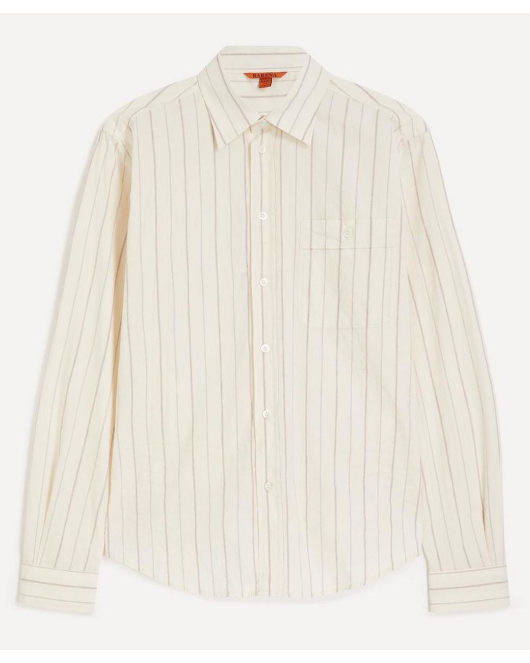 Barena Barena Mens Faziola Mora Boxy Striped Shirt | 36/46 | Barena venezia's deft balance between smart and casual style is showcased in the faziola mora shirt. Crafted in italy from crinkled striped poplin, this classic shirt is tailored for a boxy fit, featuring a point collar, button fastening, buttoned patch pocket, and long sleeves with angled, buttoned cuffs.
