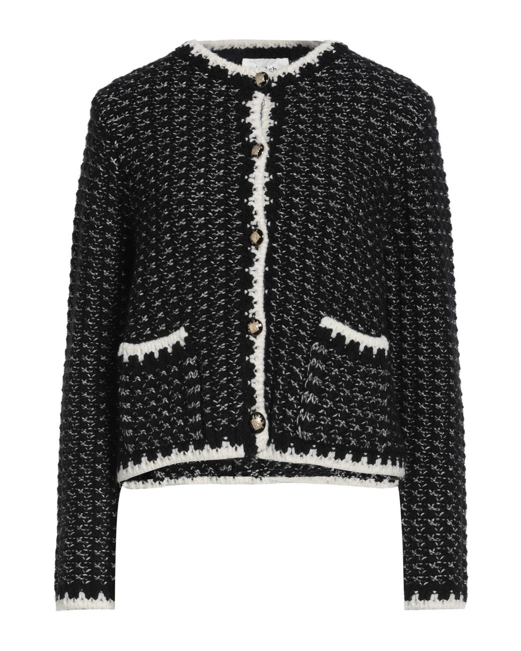 Knitted Lightweight knit Stretchy fabric No appliqués Mélange Long sleeves Button fastenings Patch pockets Hand wash or dry clean Do not bleach Do not tumble dry Colour: black