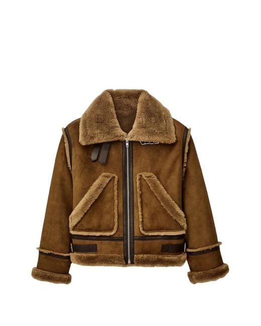 Taupe shearling trim zip fastening patch pockets straight hem long sleeves Size: 0. Gender: Female. Material:Sheep Skin/Shearling. Colour: brown