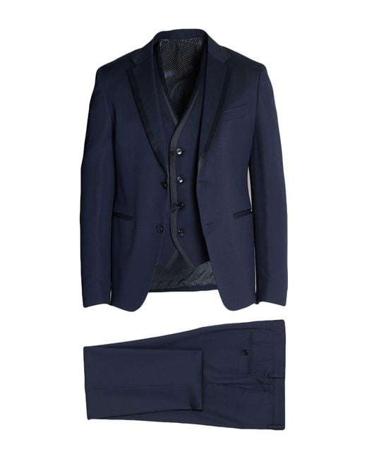 Single-breasted suit Woven Solid colour with appliqués Satin trims Lapel collar Long sleeves Fully lined Zipper fastening Pockets Internal pockets Dual back vents Low waisted 3-piece set Dry clean Do not bleach Do not tumble dry This brand runs small Colour: blue