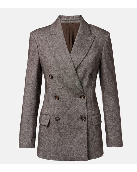 Double-Breasted Hemp And Linen-Blend Blazer - Grey