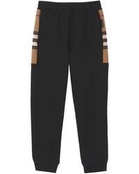Go to BaltiniLightweight twill trousers with Burberry Check print, elastic waistband and flap with zip, pockets, adjustable drawstring at the hem. Gender: Men. Material: 100% POLYESTER. Color: GREEN. Made in: IT. Product ID: 8082034IVY. *Import