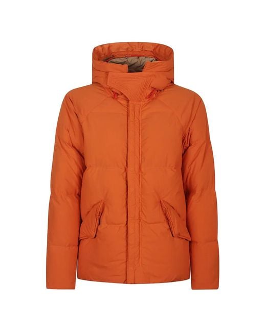 Orange hood front pockets long sleeves tonal topstitching Size: 48. Gender: Male. Material:Polyamide/Cotton/Polyester. Colour: orange