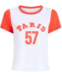Go to Saks OFF 5THCrafted of a cotton blend, the Justina jumper from Cinq á Sept flaunts a layered silhouette and showcases "Paris 57" printed at the chest. This garment is cut for a relaxed fit and