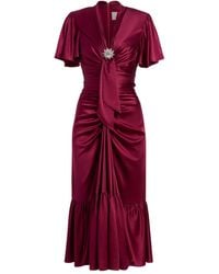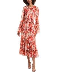 Go to Saks OFF 5THThis Cinq à Sept Peeta midi-dress is styled with a Damask print, short bell sleeves, and a sash-tie neckline. Shawl neck Short sleeves Back zip closure 100% polyester Dry clean Imported SIZE &