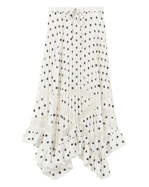 White and black polka-dot pattern lace band pleated ruffled hem drawstring fastening Size: 34. Gender: Female. Material:Polyester. Colour: white