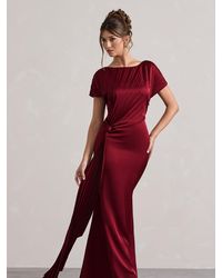 Go to NEXTThe party season is made for a mini like Linley. Crafted in soft burgundy and pink hues, this playful satin dress features a bow-detail Bardot neckline and a flattering bodycon fit. Make Linley