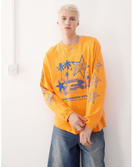 Men's Orange Long Sleeve Skater Fit T-shirt