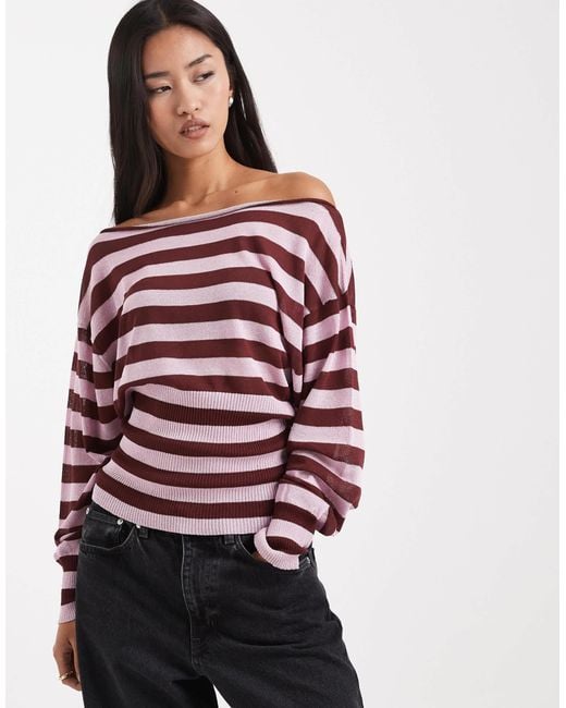 Top by COLLUSION Stripe design Asymmetric neck Long sleeves Regular fit.