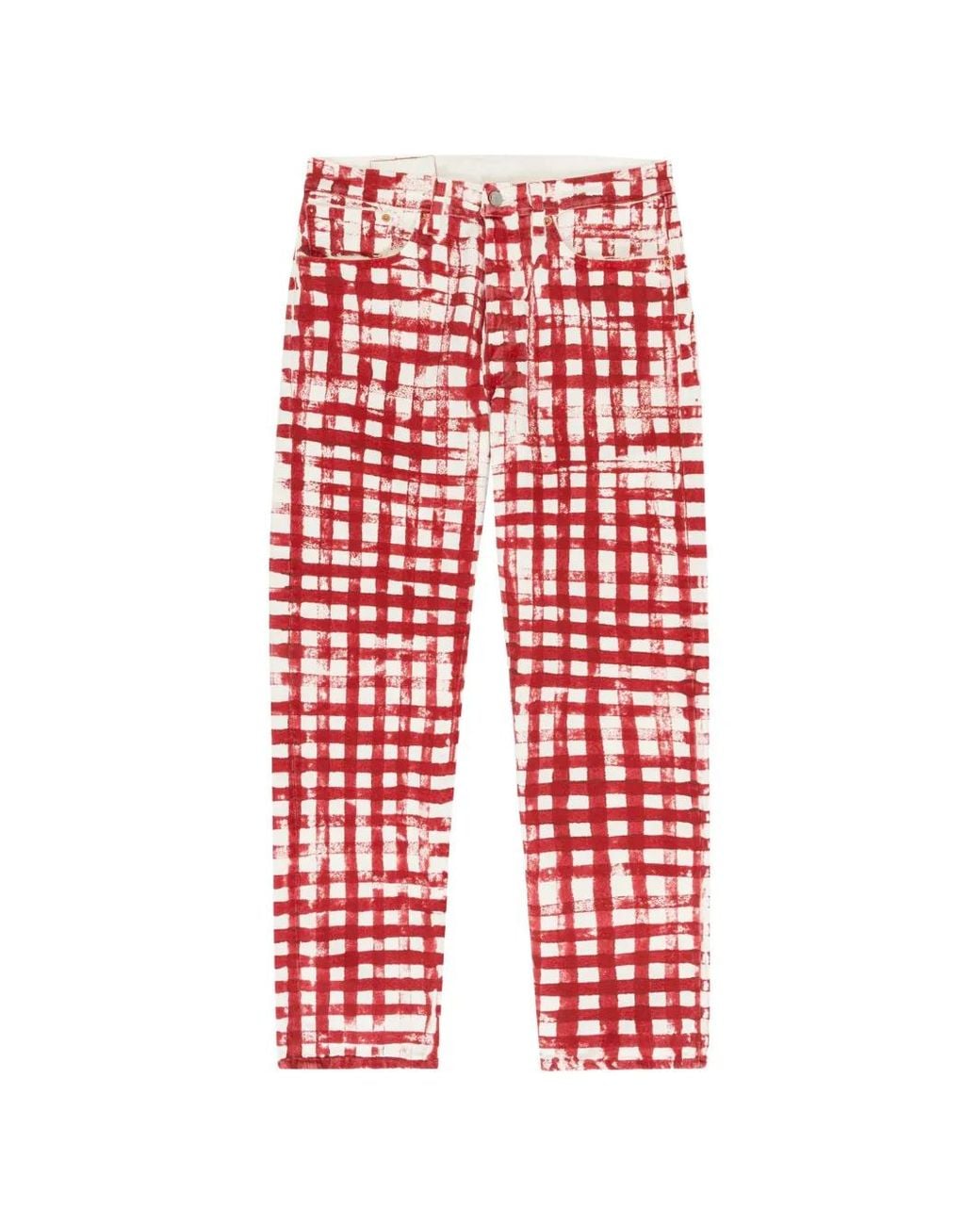 Red and white plaid pattern five pockets Size: 28. Gender: Male. Material:Cotton. Colour: red