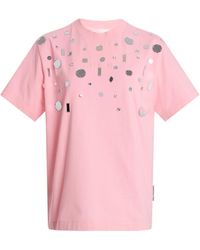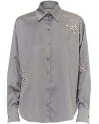 Go to YOOXOversized shirt, twill, solid colour with appliqués, crystals, brand logo, classic collar, long sleeves, button fastenings, one chest pocket, side splits, hand wash, do not bleach, do not tumble dry , Color: White