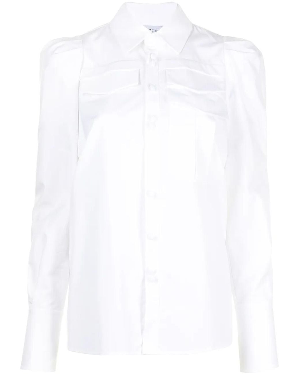 White cotton classic collar concealed front fastening chest flap pockets long sleeves buttoned-cuff sleeves straight hem Size: 36. Gender: Female. Material:Cotton. Colour: white