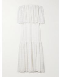 Dima Ayad Women's White Lace-Paneled Draped Maxi Dress