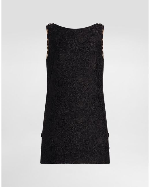 Women's Black Short Floral Quilted Jacquard Sack Dress