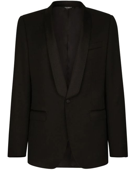 Jet black wool-silk blend classic lapels front button fastening long sleeves chest welt pocket two front flap pockets straight hem Size: 44. Gender: Male. Material:Silk/Silk/Elastane/Polyester/Wool. Colour: black
