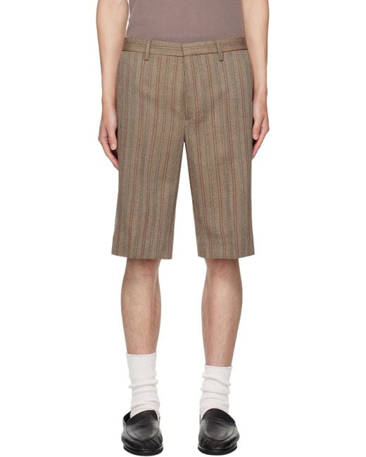 Wool dobby cloth shorts. · Striped throughout · Belt loops · Four-pocket styling · Zip fly · Creased legs Supplier color: Rust