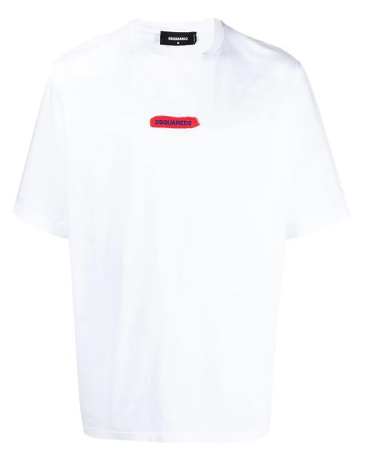 White cotton jersey knit logo print to the front painterly print crew neck short sleeves straight hem When buying this unisex item, keep in mind that it is graded in standard men's sizing. Size: L. Gender: Unisex. Material:Cotton. Colour: white