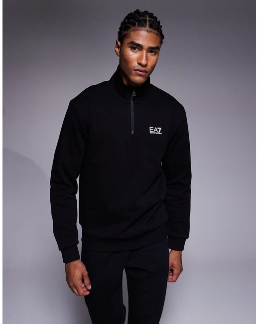 Hoodies & Sweatshirts by EA7 High neck Partial zip fastening Long sleeves Logo to chest Regular fit.