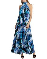 Emanuel Ungaro Women's Blue Joelle Plissé Cape Maxi Dress