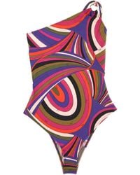 PUCCI Women's Pink Pucci Marmo Print One-shoulder Swimsuit