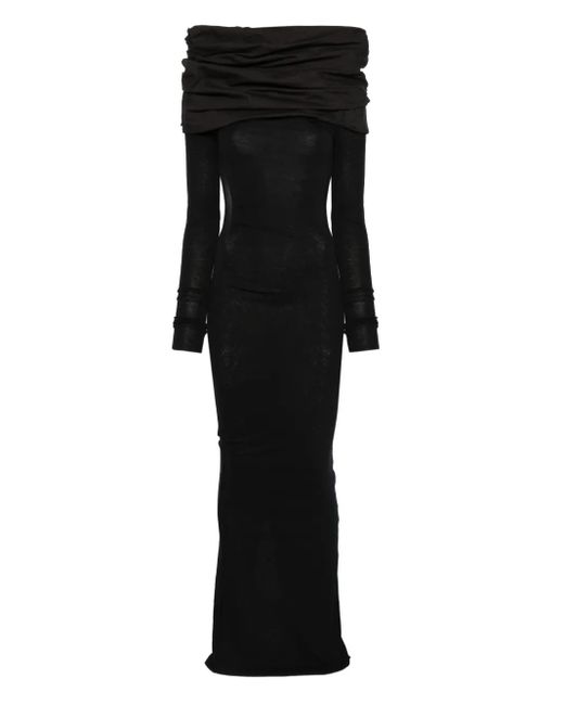 Draped Long-Sleeve Maxi Dress - Grey