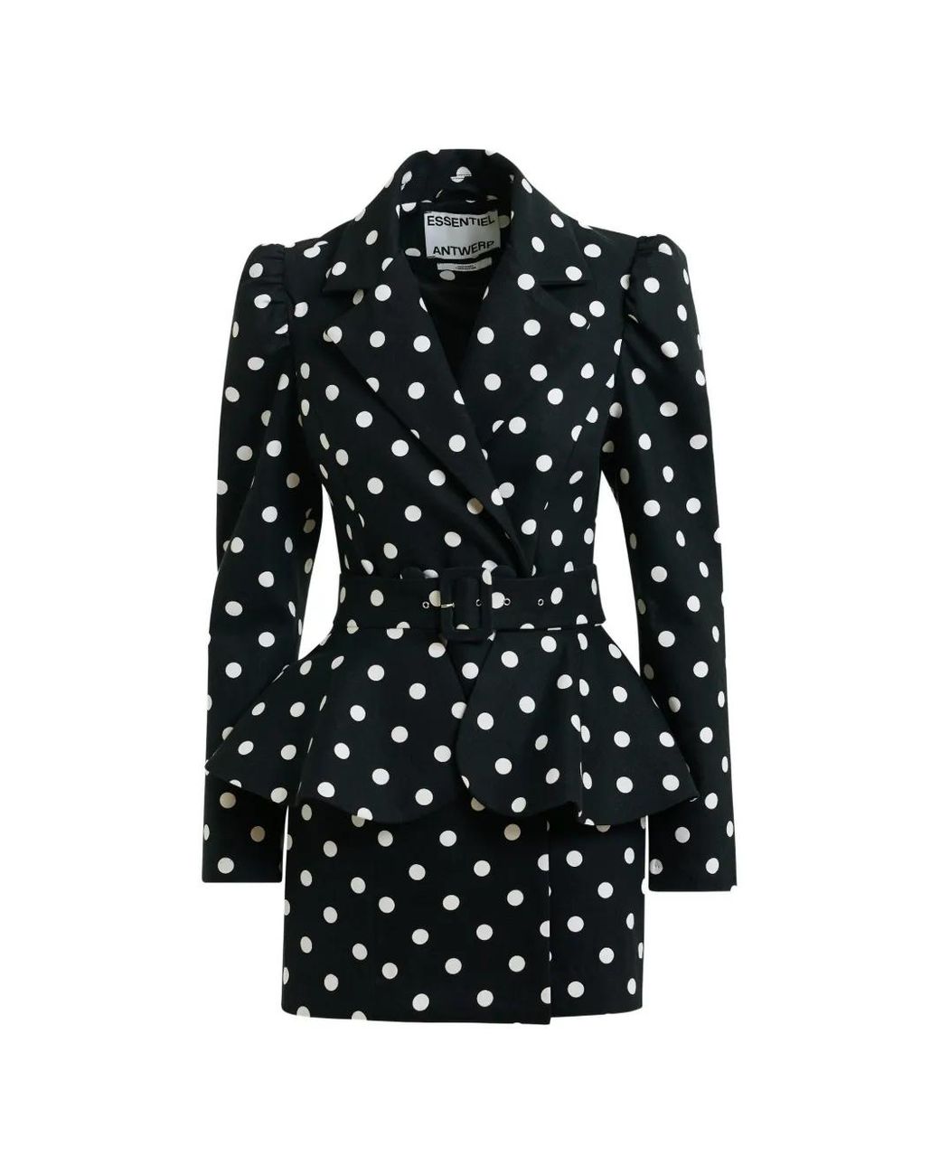 Black and white polka-dot print double-breasted front welt pockets Size: 34. Gender: Female. Material:Cotton/Polyester. Colour: black