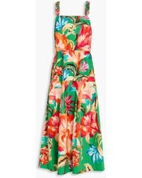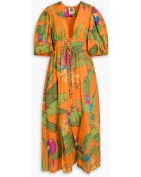 FARM Rio Women's Purple Embellished Floral-Print Lace-Paneled Cotton Midi Dress