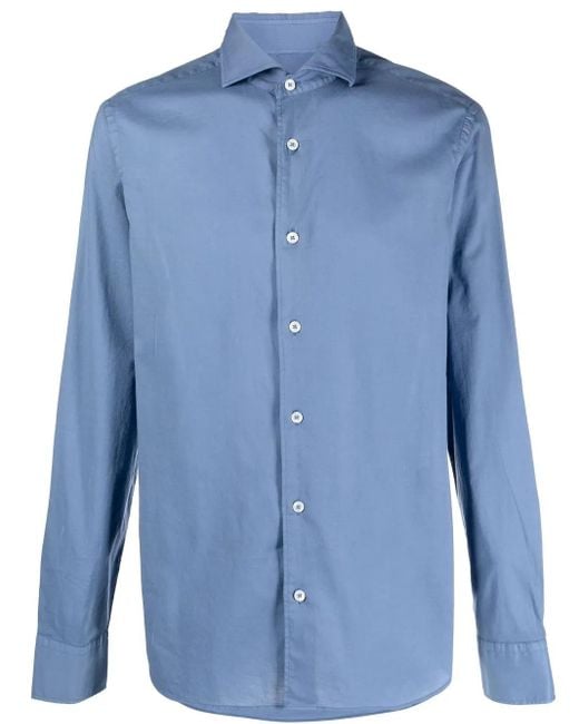 Light blue stretch-cotton classic collar front button fastening long sleeves curved hem Size: 43. Gender: Male. Material:Cotton/Elastane. Colour: blue
