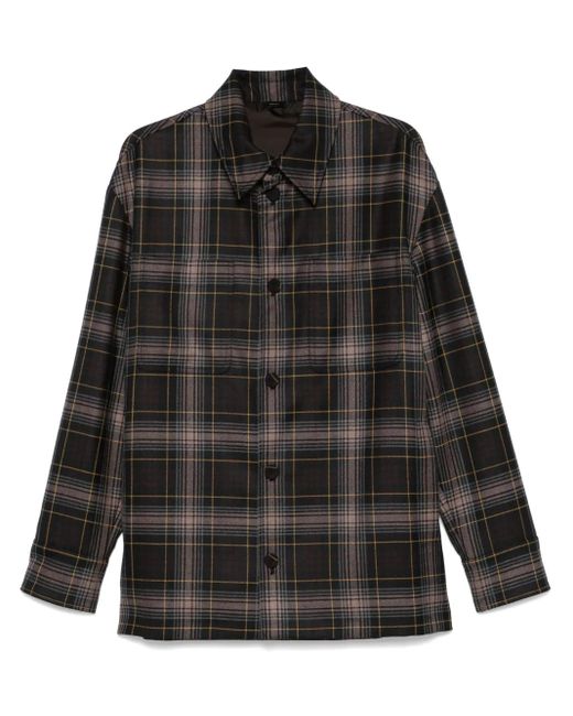 Coffee brown front button fastening chest patch pocket buttoned-cuff sleeves straight-point collar Size: 36. Gender: Male. Material:Wool/Cupro.