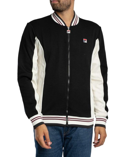 The Fila Settanta Baseball Track Jacket in Black, Gardenia, Fig, and Charcoal offers a versatile reinterpretation of the legendary Settanta design. Featuring an embroidered chest logo, branded full zip, ribbed cuffs and hem, elasticated collar, and open pockets, it combines retro heritage with modern functionality. The bold four-tone finish is eye-catching and celebrates Fila's tennis archive. Stylish and practical, this jacket is an essential for lovers of vintage-inspired sportswear. Colour: black
