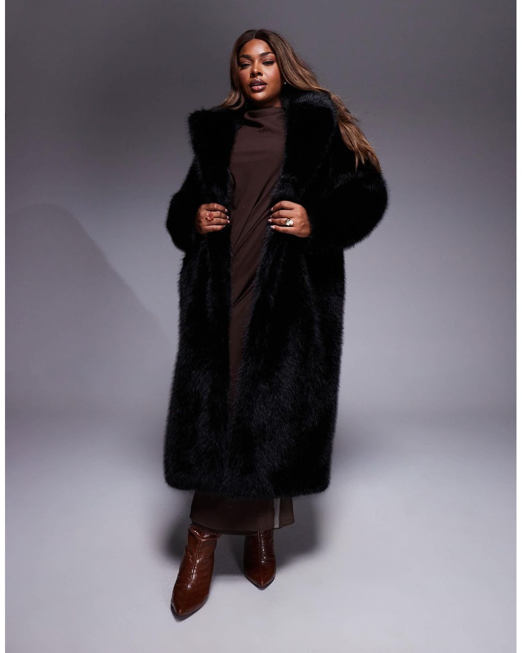 Faux Fur Maxi Coat - Brown