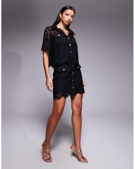 Women's Blue Lola Lace Button Detail Mini Skirt