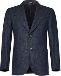 Go to FARFETCHIndigo blue double-breasted button fastening jetted chest pocket two front patch pockets buttoned cuffs Size: 54. Gender: Male. Material:Viscose/Virgin Wool. Colour: blue