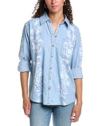 Go to Rue La LaAbout the brand: The free-spirit essence and artistry of Bohemian fashion. Lace Embroidered Denim Shirt in Montauk wash with spread collar, embroidered detailing and button cuffs Approximately 31in from shoulder to hem Model