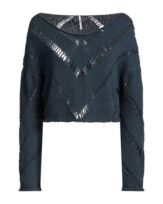 Knitted Mid-weight knit Perforated No appliqués Solid colour Scoop neckline Long sleeves Hand wash or dry clean Do not bleach Do not tumble dry Colour: blue