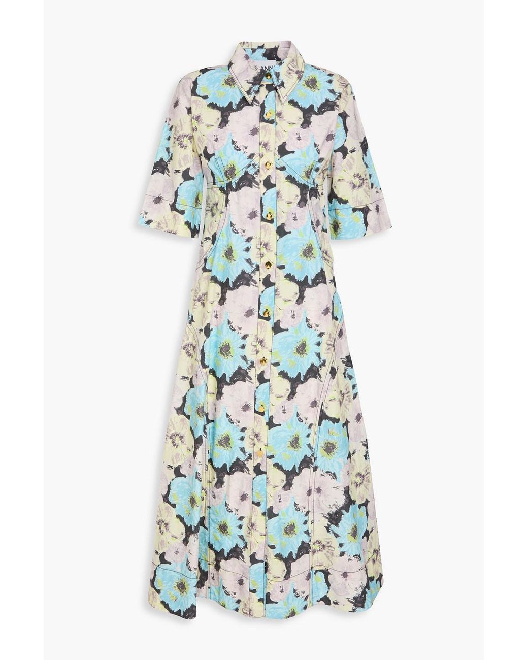 - Floral-print Cotton-poplin Midi Shirt Dress