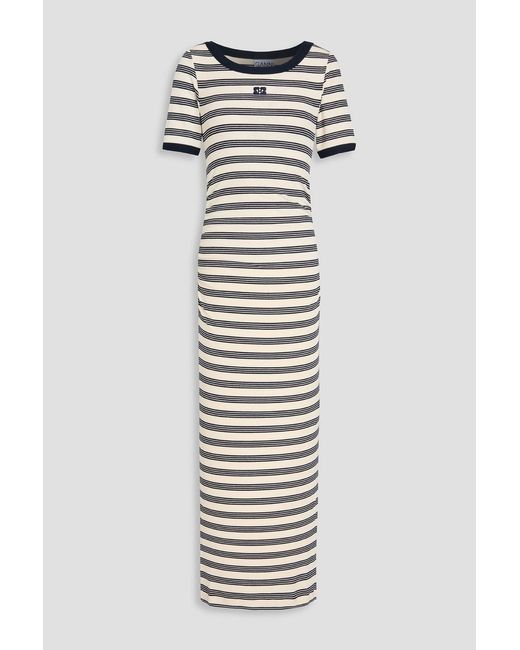 Women's White Striped Cotton-Blend Jersey Midi Dress
