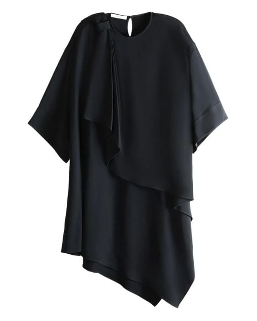 Black asymmetric hem short sleeves ruffled detail round neck Size: 36. Gender: Female. Material:Viscose/Acetate/Elastane. Colour: black