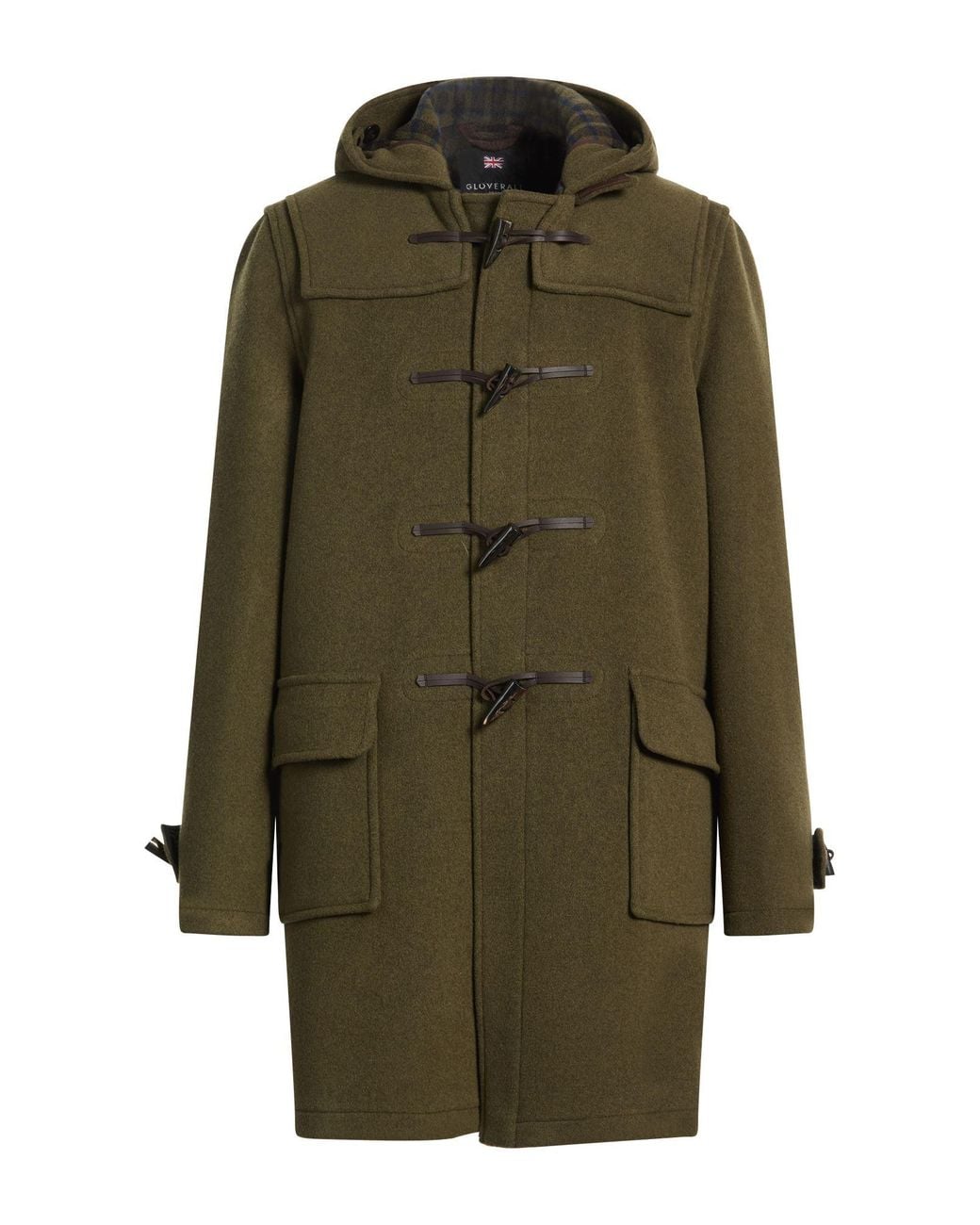 Duffle coat Felt Solid colour Leather trims Hooded Single-breasted Long sleeves Unlined Toggle fastenings Flap pockets Contains non-textile parts of animal origin Dry clean Do not bleach Do not tumble dry Colour: green