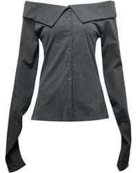 Go to FARFETCHBlue striped button fastening off-shoulder style long sleeves collar Size: 1. Gender: Female. Material:Fabric. Colour: blue