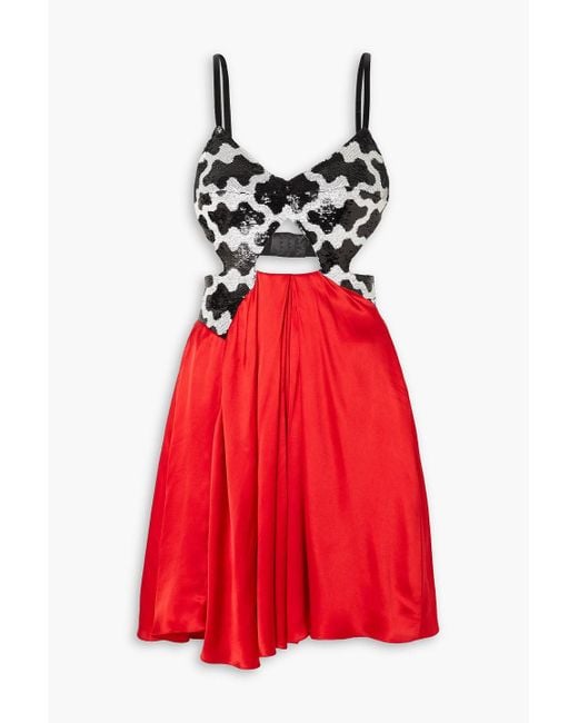Women's Red Cutout Sequined Tulle And Satin Mini Dress